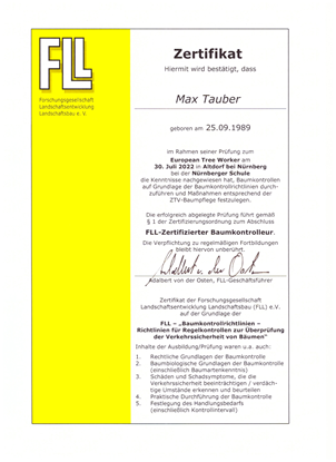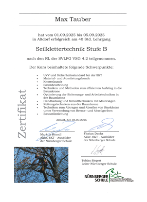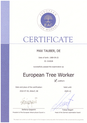 Bereits in meinem vorherigen Job begann meine Faszination für den Beruf des Baumpflegers. Die Kombination aus Höhenarbeit, Arbeit in der Natur, sowie der Arbeit an und mit Bäumen reizte mich sehr. Im Jahr 2020 bekam ich die Möglichkeit meiner ersten Schritte in diesem Bereich. Die Komplexität des Berufes, das nötige Wissen über Bäume als Pflanze und Lebensraum, sowie die notwendigen, zu erlernenden Techniken weckten mein Interesse und ich beschloss diese Herausforderung anzunehmen.